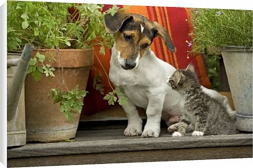 Canvas Prints of Dog - 3 month old Jack Russell Terrier Puppy with 2 month old kitten from Ardea Wildlife Pets
